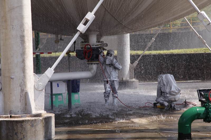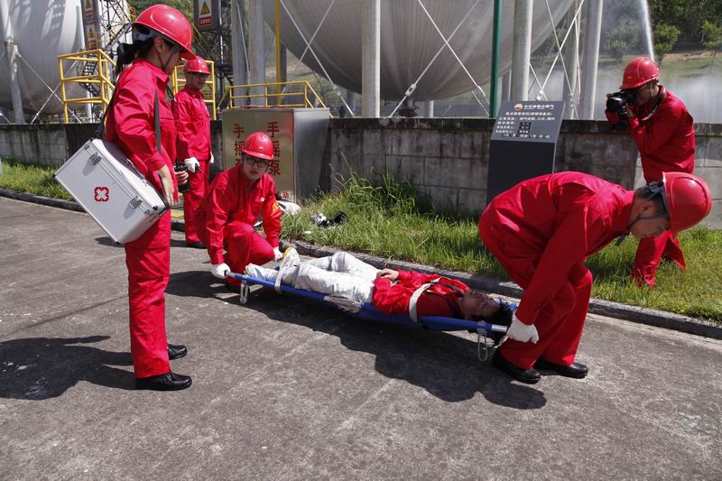 演练现场,设有消防抢险救援组、医疗救护组、环境监测组、现场堵漏组、治安警戒组等按照既定预案标准、规范完成各自的规定动作,所有处置工作紧张有序。